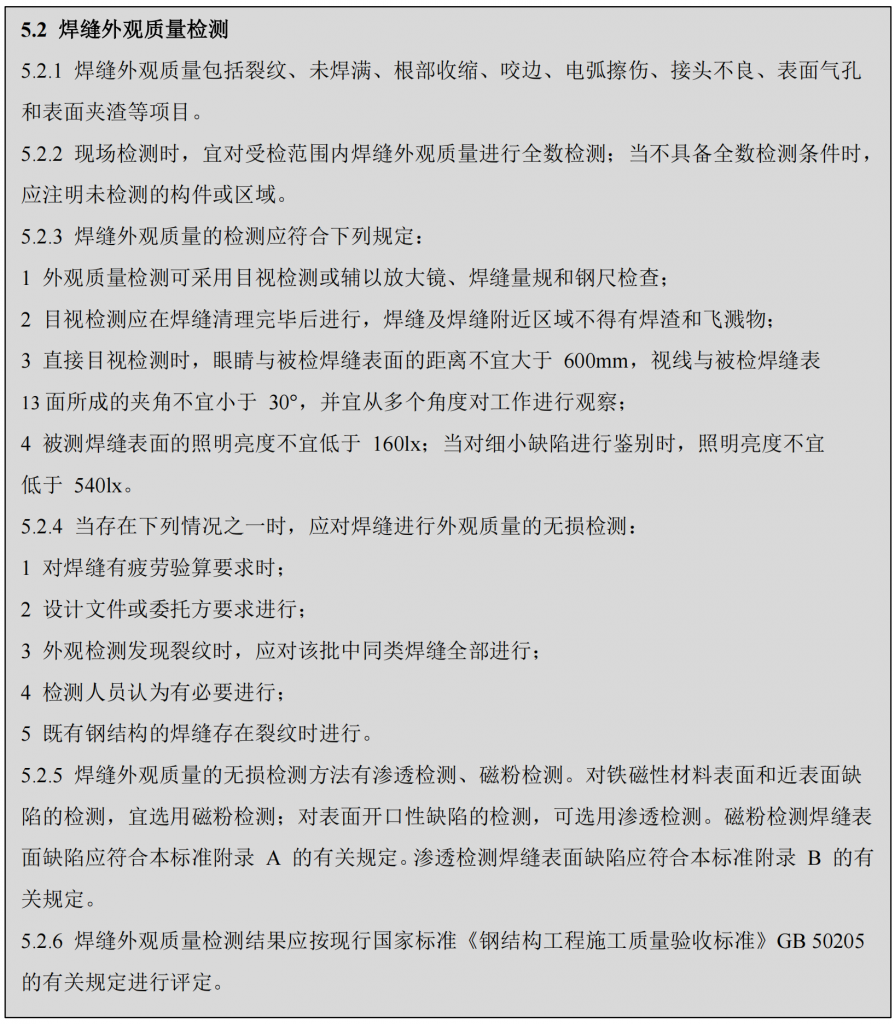《鋼結構現場檢測技術標準》T/CECS1009-2022中與焊接檢測相關的部分內容。