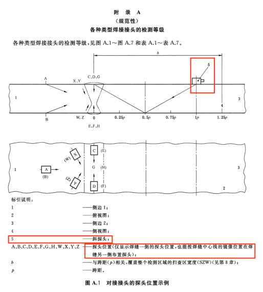 15增加了插人式管座角接頭直探頭位置的圖示(見圖A.3,2013年版的圖A.3)